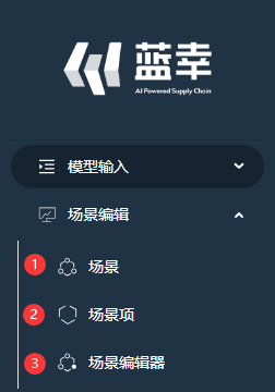 左侧的功能模块按钮可以切换不同的模型功能,主要功能模块包括模型输入、场景编辑、运行选项、模型输出四个部分。各个模块功能将分别在后面章节详述。
