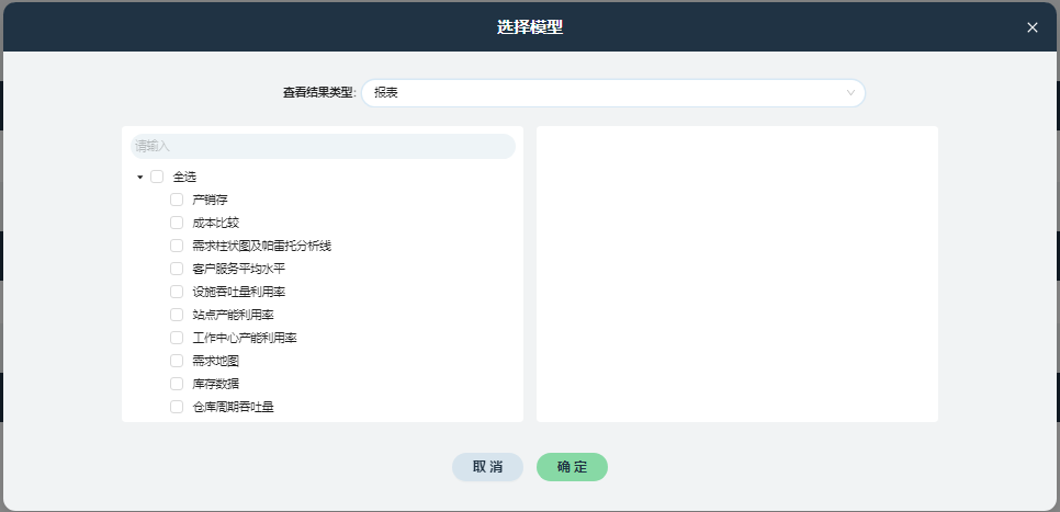 选中一个当前模型,点击按钮弹出复制模型对话框。复制后的模型,模型名称会自动增加“_复制”后缀,求解类型及备注默认与当前模型一致,也可手动进行修改。