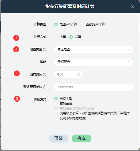 - Y轴:柱状图中的Y轴展示的值,可选择趟次名称与车辆名称;